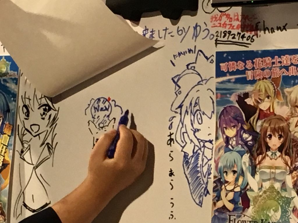 池袋のど真ん中で花騎士の紹介ムービーが流れまくってるのとか、キャラクターの好物などを反映したカフェのメニューとか、カフェを訪れた皆さんの寄せ書き的なホワイトボードとか見てると、
